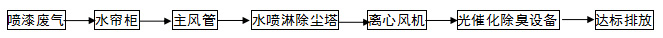 二、噴漆廢氣處理設(shè)備(水噴淋除塵塔+光催化除臭設(shè)備)處理工藝說(shuō)明: